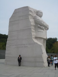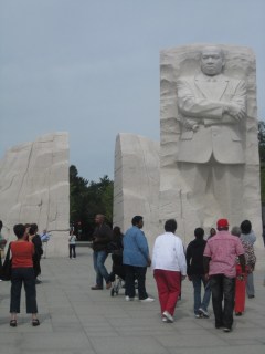 The first moment of inspiration came during a visit to the new Martin Luther King, Jr. monument on the National Mall.  It was an amazing experience—not least because of the many, many visitors, young and old, vying to have their picture taken with the enormous image of Dr. King standing strong and tall behind them.  In particular, I watched three older African American women in wheelchairs, being pushed slowly around the exhibit, who insisted on having their picture taken with their hands on the monument itself.  I wondered what they were thinking, what they were feeling.  To say I was moved would be an understatement.
