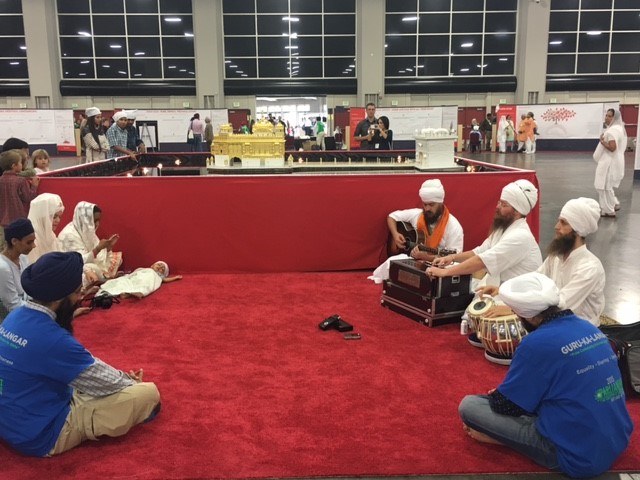 I went to the Langar again today–this time, I wanted to show the replica of the Golden Temple in Amritsar that was constructed, and also the group of Sikhs singing kirtan. The Sikhs had a very strong, visible presence at this Parliament; it was interesting to notice which groups were represented in force, and which groups were absent almost altogether [Confucianism and Taoism, for example].