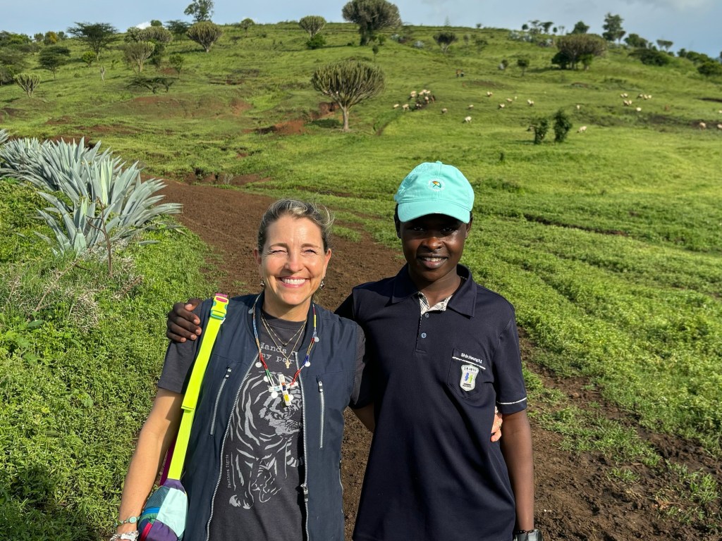 We brought one of Beth‘s former students, Naiyonde, with us. She and her brother Michael had invited us to their family boma, the name for a traditional Maasai family complex. It was located high up in the hills above Monduli, and the views were absolutely breathtaking. The whole family welcomed us so warmly, with delicious cups of chai, and cups of lashoro, corn in sour milk. Let’s just say it’s an acquired taste.