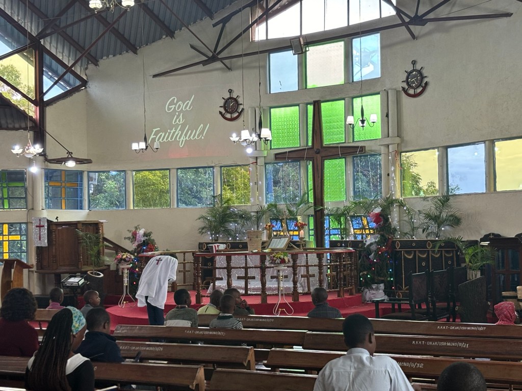 There are lots of things that I could say about the service, which was so interesting and meaningful, but I think the main comment that I will make is how much I appreciated the way space was created in the service for so many different people to be seen. For example, at the beginning of the service, the young children were invited up to the front and several of them were invited to share a memory verse, for which the congregation enthusiastically applauded. One of the boys who shared a verse was so young that the pastor actually held him in his arms—and he did beautifully! Another example was when people were invited up to request a specific prayer or blessing for something going on in their life. And finally, toward the end of the service, all of the children who were going back to school—of any age—were invited up for a special blessing. And if the children couldn’t be there, the parents came and stood in their place. We had some good conversation over lunch, reflecting on what we had experienced in relation to our own perspective with worship in the United States.