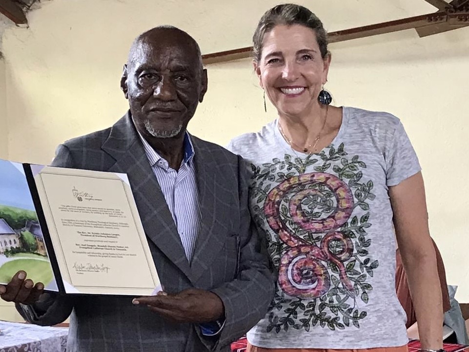 Giving Pastor Joel Nangole a Wartburg Certificate